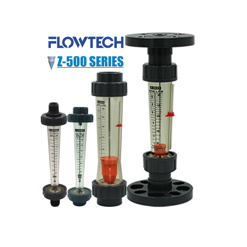 Z-500 Series...เป็นโฟล์วมิเตอร์ชนิดหลอดพลาสติคเหมาะสำหรับงานน้ำที่มีอุณหภูมิไม่เกิน 60°C และแรงดันไม่เกิน 6 บาร์  มีสเกลอ่านค่า 2 หน่วยคือ GPM / LPM (แกลลอนต่อนาที / ลิตรต่อนาที)  โดยมีขนาดข้อต่อตั้งแต่ 1/2" - 2" ลูกค้าสามารถระบุรูปแบบของข้อต่อได้ตามความต้องการเช่น สวมทากาวท่อฟ้า, สวมทาวกาวท่อ Sch.80 UPVC, เกลียวใน, หน้าแปลน เป็นต้น นอกจากนี้ยังมีอุปกรณ์เสริมคือ Lower / Upper Limit Switch